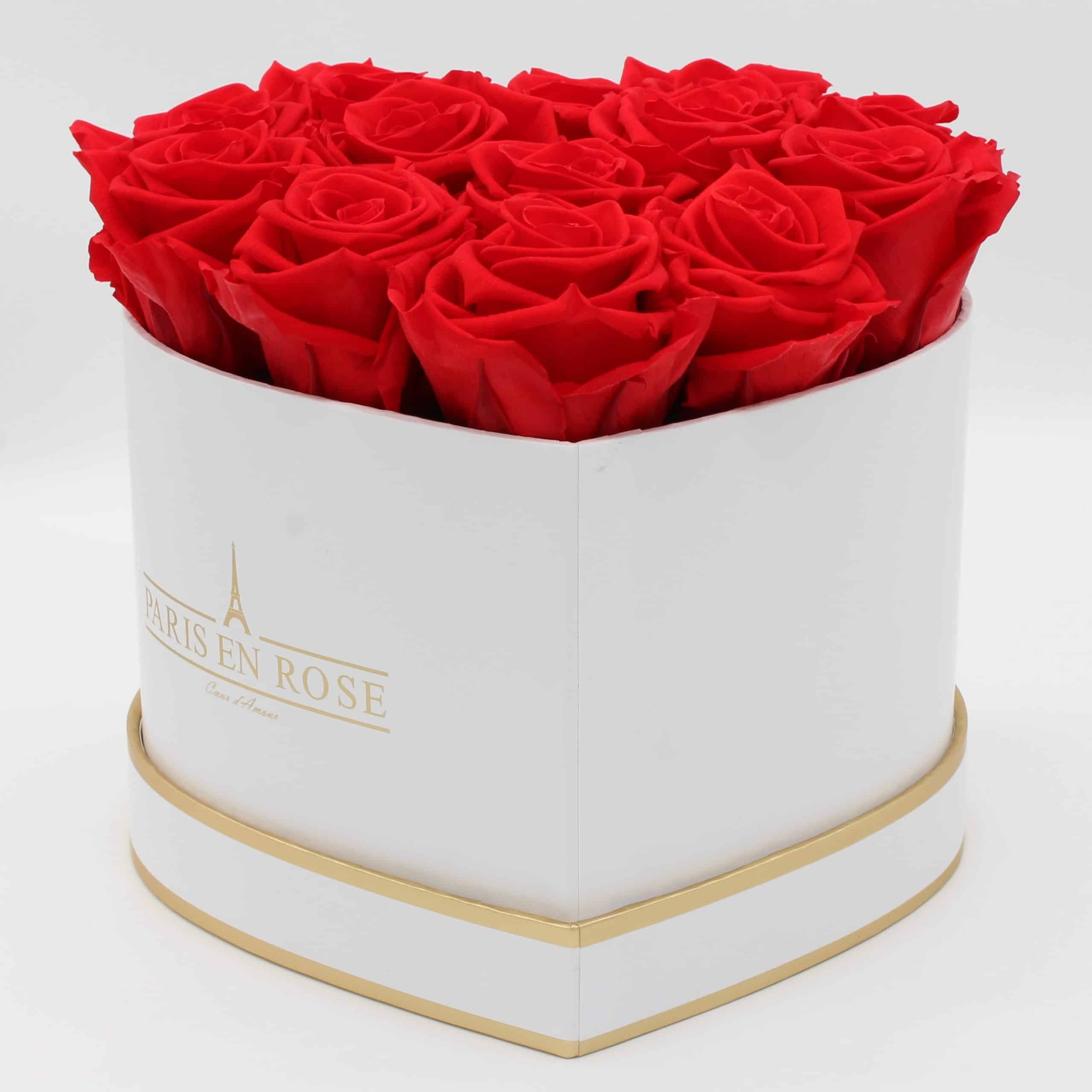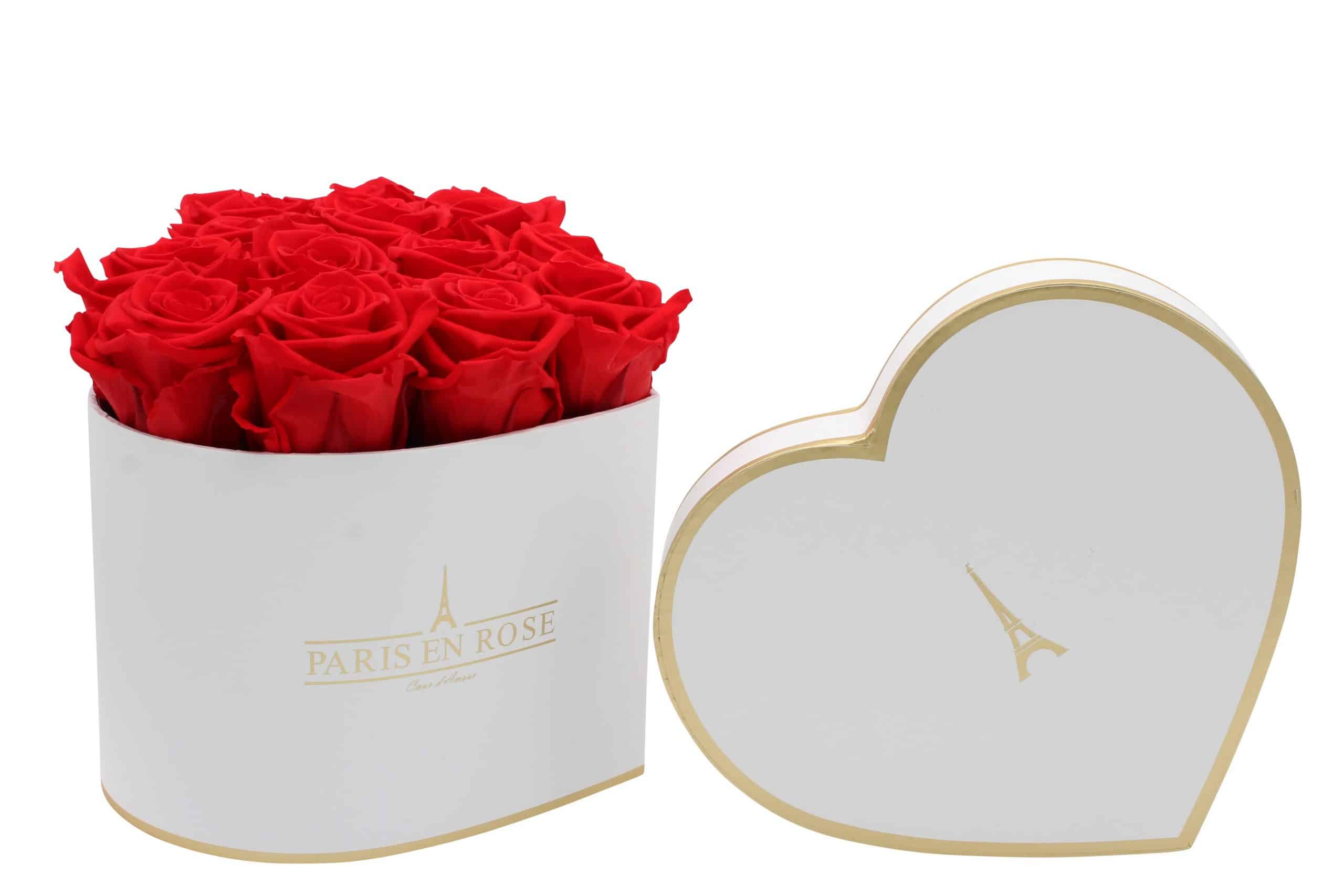 ✓ ROSENBOXEN: Unsere Rosen präsentieren sich in einer hochwertigen Box aus stabilem Karton, weißer Herzform mit goldener Umrandung.